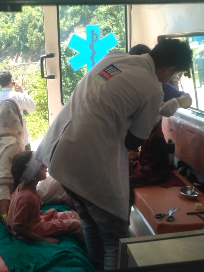 घायलों को 108 के माध्यम से स्वास्थ्य सामुदायिक केंद्र थत्यूड़ लाया जा रहा है |
