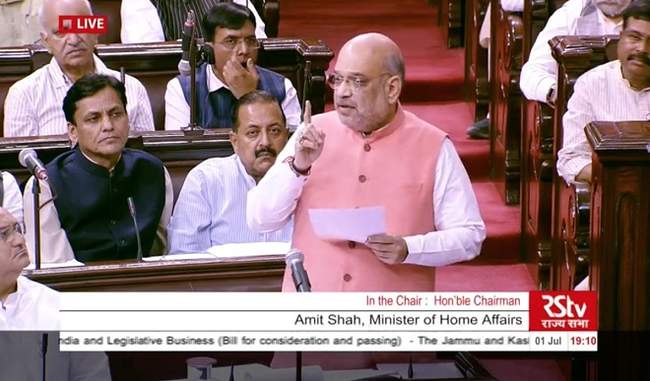 नई दिल्ली I लोकसभा के बाद आज राज्यसभा में गृह मंत्री अमित शाह ने जम्मू कश्मीर आरक्षण संशोधन विधेयक और राष्ट्रपति शासन बढ़ाने के प्रस्ताव पर राज्यसभा में कहा कि जम्मू कश्मीर भारत का अभिन्न अंग है और इसे कोई भी भारत से अलग नहीं कर सकता है। गृह मंत्री ने कहा कि मोदी सरकार की नीति आतंकवाद को कतई बर्दाश्त नहीं करने की, सरकार जम्मू कश्मीर के विकास के लिए प्रतिबद्ध है। उन्होंने कहा कि मैं फिर दोहराना चाहता हूं कि नरेन्द्र मोदी सरकार की आतंकवाद के प्रति जीरो टॉलरेंस की नीति है। शाह ने विपक्ष पर हमलसला करते हुए कहा कि जम्मू कश्मीर में लोकतंत्र सिर्फ तीन परिवारों तक ही सीमित नहीं होनी चाहिए। उन्होंने सवाल करते हुए कहा कि कश्मीरी पंडितों, सूफी परंपराओं को कश्मीर से बाहर किसने किया, क्या वे कश्मीरी परंपरा का हिस्सा नहीं थे? शाह ने कहा कि एक समय ऐसा आएगा जब कश्मीर में मंदिर में पूजा करते कश्मीरी पंडित दिखेंगे।