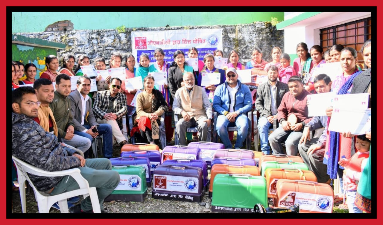 ग्राम सभा बुडोगी के सामुदायिक भवन में आयोजित प्रशिक्षण कार्यक्रम के समापन के अवसर पर प्रशिक्षण ले रहीं 30 महिलाओं को मुख्य अतिथि शिवानी बिष्ट व क्षे0 युवा कल्याण अधिकारी सुरेश गुसांई द्वारा एक-एक सिलाई मशीन और प्रमाण पत्र के साथ सिलाई से सम्बन्धित सामग्री भी प्रदान की गई।