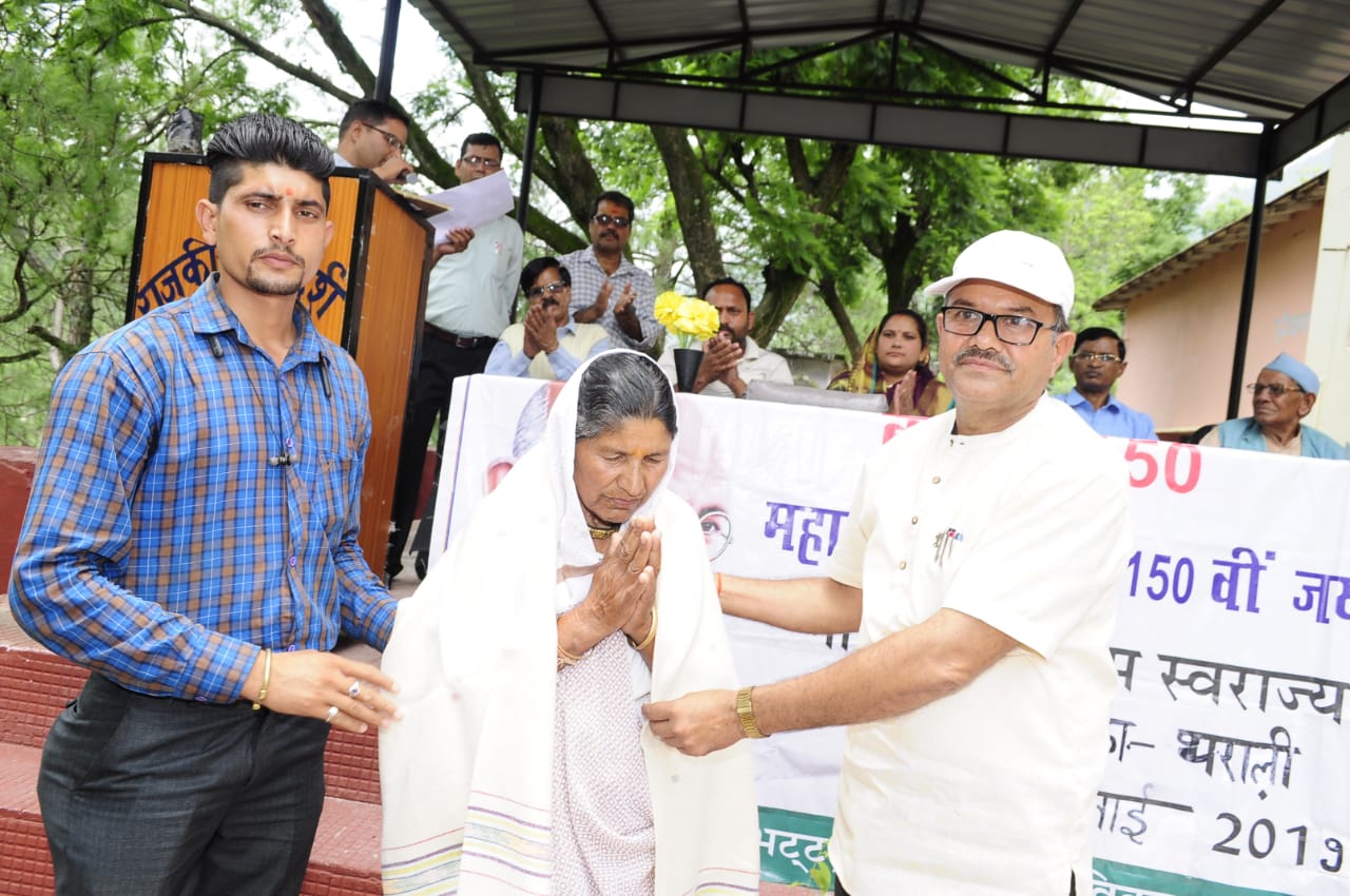 राजकीय आर्दश इंटर कॉलेज थराली के मैदान में राष्ट्रपिता महात्मा गांधी की 150वीं जयंती वर्ष पर आयोजित कार्यक्रमो की श्रृंखला में बज्वाड की कुंती देवी को समाजिक कार्यक्रम के लिए नेल ढालू के वन पंचायत सरपंच महिपाल सिंह रावत, बद्रीनाथ वन प्रभाग थराली के रेंज अधिकारी गोपाल सिंह बिष्ट एवं वन प्रभाग देवाल के त्रिलोक बिष्ट को पर्यावरण के क्षेत्र में अभिनव प्रयोग करने के लिये एवं मानवेंद्र सिंह रावत को शिक्षा एवं रेडक्रास सोसायटी के साथ बेहतर कार्य करने के लिये गांधी 150 सम्मान से सम्मानित किया गया। सम्मान में अंगवस्त्र, स्मृति चिन्ह प्रदान किया गया। इससे पूर्व विकासखंड थराली के राजकीय इंटर कॉलेजो में कराई गई चित्रकला प्रतियोगिता जिसका विषय गांधी के सपनो का भारत था में दिब्या, कल्पना एवं देवांश बिजल्वाण को क्रमश: प्रथम द्वितीय एवं तृतीय पुरूष्कारो से एवं निबंध प्रतियोगिता जिसका विषय 21वीं सदी और गांधी में दीपा गडिया, प्रियंका एवं रीना को प्रथम, द्वितीय एवं तृतीय पुरूष्कारो से सम्मानित किया गया। पुरूष्कार विजेताओं को क्रमश: 5000, 3000 एवं 2000 रूपयो की धनराशि एवं प्रमाण पत्र प्रदान किये गये। पर्यावरण क्षेत्र के प्रसिद्घ चिपको आंदोलन के दौरान पिंडर घाटी में आंदोलन में शामिल गायित्री देवी को इस वर्ष का केदार सिंह रावत स्मृति सम्मान से सम्मनित किया गया। इस दौरान वक्ताओं ने महात्मा गांधी के जीवन एवं उनके विचारो को आज भी प्रासांगिक बताते हुये अपने जीवन में अपनाने की बात कही। इस दौरान नगर पंचायत अध्यक्षा दीपा भारती , विद्यालय के प्रधानाचार्य लालमणी आजाद, वृक्ष मित्र एडवोकेट सोनी, गांधीवादी विचारक मुरारीलाल, पूर्व प्रधानाचार्य एनआर थपलियाल, नरेंद्र लाल, एलपी थपलियाल, आरसी पंत, सीपीबी के ओमप्रकाश भट्ट, विनय सेमवाल, मंगला कोठियाल, जागो हिमालयन के मनोज, अभिषेक, सुभाष पिमोली, मोहन गिरी, गिरीश चंदोला, विनोद चंदोला, नरेंद्र भारती, खीमानंद खंडूरी, मनोज जोशी, सत्यादेव नौटियाल, कविता सती, आबिदा खान, सारिका गर्ग, एमपी यादव, एमएस फरस्वाण, सुशीला नेगी, दिनेश चंद्र परिहार, एमएस रावत, सीपी देवराडी, आदि उपस्थित थे। समारोह का संचालन मनोज बिजल्वाण द्वारा किया गया।