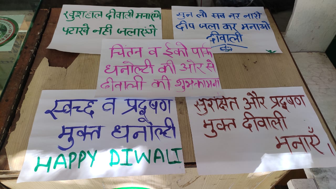 चिंतन संस्था वन विभाग ईको पार्क समिति के साथ मिलकर अबकी दीवाली दीये वाली व प्रदूषण मुक्त आहवान के साथ चलाया जन जागरुकता अभियान