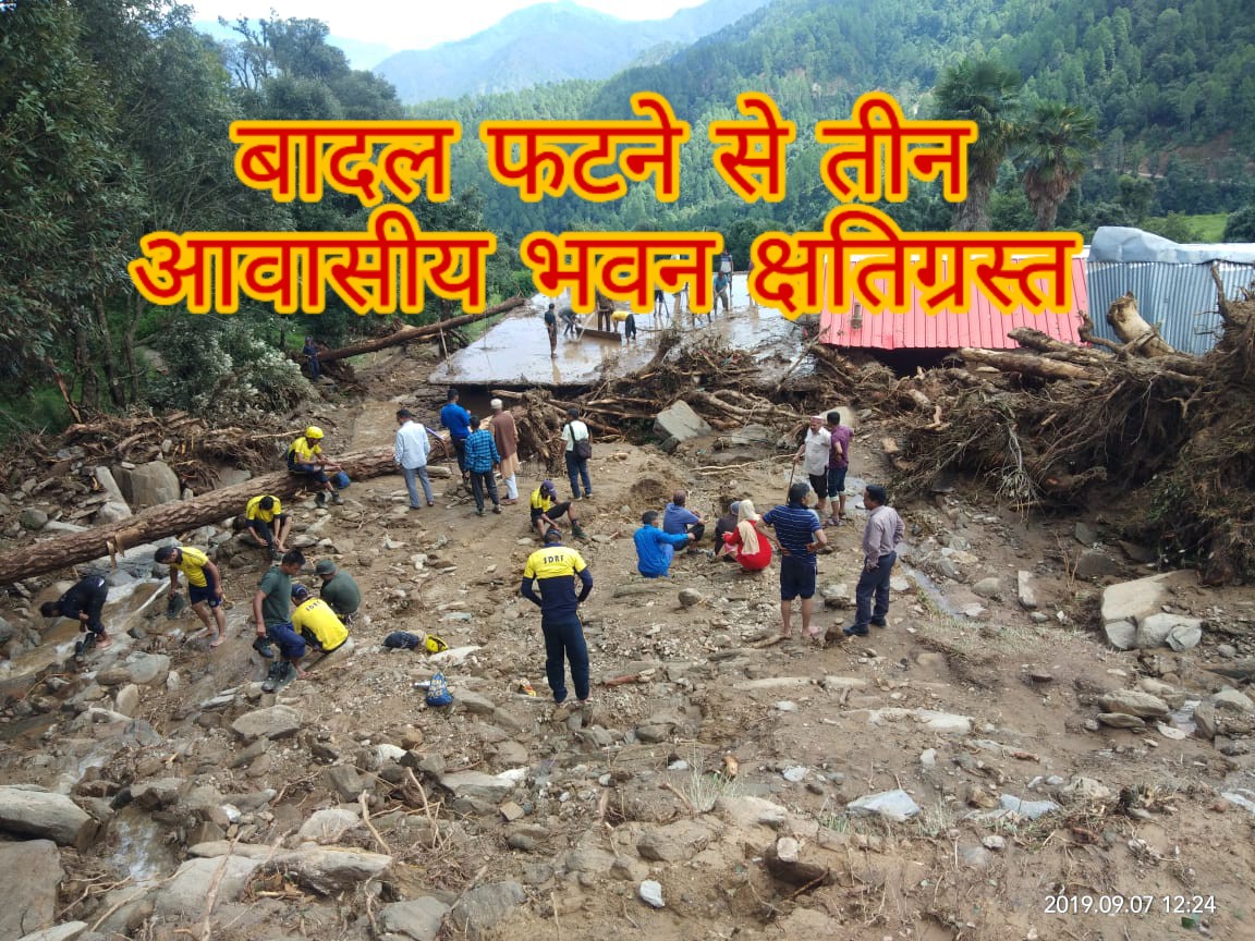 हुई है जिसमें आनंद सिंह के दो आवासीय भवन एवं एक गौशाला, देवली देवी की एक आवासीय भवन ओर एक गौशाला ,मौली देवी का एक गौशाला क्षतिग्रस्त हुई है। बादल फटने की आवाज सुन लोग अपने घरों को छोड़कर सुरक्षित स्थानों की ओर भागे। बाद में ग्रामीणों ने गौशाला में दबे मवेशियों को निकाला । इसी आपाधापी में आनंद सिंह एवं देवली देवी को चोटें भी आ गई। घटना की सूचना पर  प्रातः तहसीलदार सोहन सिंह रांगड़ , राजस्व निरीक्षक तलवाड़ी विनोद कुमार एवं चौकी प्रभारी ग्वालदम आशीष रवियाल घटनास्थल पर पहुंचे बाद में थाना प्रभारी थराली सुभाष घटनास्थल पर पहुंचे।