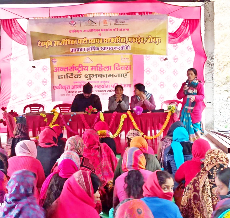 थत्यूड़। एकीकृत आजीविका सहयोग परियोजना चंबा द्वारा सहकारिताओ व सीबीईडी संस्था के सहयोग से जौनपुर विकासखंड में परियोजना महिला किसानों के साथ महिला दिवस मनाया गया,कार्यक्रम की अध्यक्षता पंचगांव सहकारिता की पूर्व अध्यक्ष व वर्तमान ग्राम प्रधान रामप्यारी देवी द्वारा की गई जिसमें उनके द्वारा महिला उत्थान पर अपने विचार रखे व महिलाओं को जागरुक होने के लिए प्रेरित किया इस अवसर पर परियोजना के प्रभागीय प्रयोजना प्रबंधक डॉक्टर हीरा बल्लभ पंत द्वारा महिला सशक्तिकरण पर जोर देने को कहा आजीविका परियोजना से कैसे महिलाएं स्वावलंबी बने इसके उदाहरण प्रस्तुत किए तथा महिलाओं के विकास हेतु विभागीय योजनाओं के बारे में बताएं।