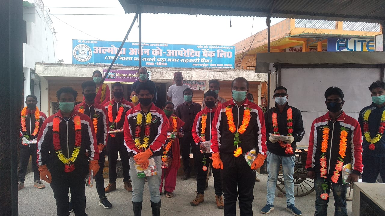 नगर पंचायत बेरीनाग के सफाई कर्मीयों को व्यापारी ने किया सम्मानित |