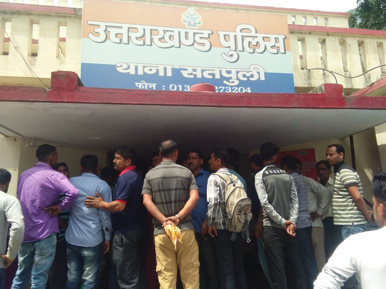 सतपुली- नगर पंचायत सतपुली स्थिति थाने के पुलिस वालों के द्वारा कल रात्रि को टैक्सी ड्राइवर के साथ की गई मारपीट को लेकर ग्रामीणों ने रोष व्यक्त करते हुये आज थाने का घेराव किया। मामला राजस्व क्षेत्र बौसांल का बताया जा रहा है। थाने में जाने से पहले ग्रामीणों ने सतपुली बाजार में जुलूस निकाल कर प्रदर्शन किया तथा जुलूस के बाद थाना सतपुली का घेराव किया।