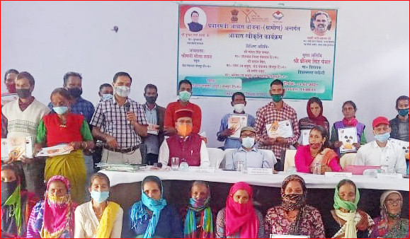 प्रधानमंत्री आवास योजना के लाभार्थियों को विधायक प्रीतम सिंह पंवार ने स्वीकृति पत्र व हस्त पुस्तिका भेंट की।