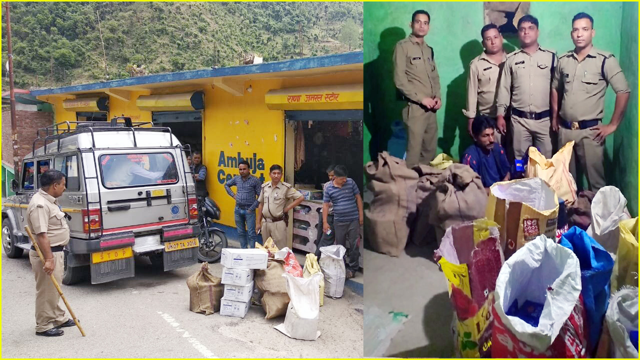 थत्यूड़। जनपद टिहरी गढ़वाल के विकासखंड जौनपुर में शराब माफियाओं द्वारा क्षेत्र में चंडीगढ़ ब्रांड शराब की सप्लाई जोरों पर चल रही थी जिस पर आबकारी विभाग टिहरी द्वारा मुखबिर की सूचना पर अभियान चलाया गया जिसमें विभाग द्वारा भवान नगुण मोटर मार्ग के भाल गांव में दलवीर सिंह पुत्र मदन सिंह काटल भाल के होटल व घर पर छापा मारा गया जिसमें करीब 23 पेटियां शराब की पकड़ी गई जिसमें कुल 228 बोतल तथा 192 पव्वे चंडीगढ़ ब्रांड शराब पकड़ी गई जिसका बाजारी मूल्य ₹175000 बताया गया है आबकारी निरीक्षक प्रेरणा बिष्ट ने बताया की अभियुक्त के विरुद्ध अभियोग पंजीकृत कर जेल भेज दिया गया चंडीगढ़ शराब का मेन तस्कर पूलम सिंह मोरियाना वाले द्वारा क्षेत्र में सप्लाई की जाती थी तस्कर पूलम सिंह अभी फरार है जिसकी गिरफ्तारी के लिए क्षेत्र में दबिश दी जा रही है। अभियान दल के आबकारी उप निरीक्षक भजन सिंह चौहान मदन सिंह चौहान हेड कांस्टेबल आशीष उनियाल आनंद सिंह दीपक रतूड़ी एवं सूरज शेखर आदि लोग अभियान में मौजूद थे।