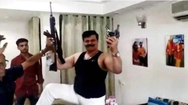 विधायक कुंवर प्रणव सिंह चैंपियन का मंगलवार देर रात एक वीडियो वायरल होते ही चर्चाओं में आ गया। वीडियो में चैंपियन डांस करते नजर आ रहे हैं। फिल्मी गाने पर डांस के दौरान वह हाथों में बंदूक लिए हैं। साथ ही दो पिस्टल भी उनके हाथ में दिखाई दे रही है। बाद में एक पिस्टल मुंह में दबाकर भी वह डांस करते नजर आए। इस दौरान शराब पीते भी वह दिखाई दिए। डांस के दौरान वे अभद्र भाषा का भी प्रयोग कर रहे हैं। साथ ही, उत्तराखंड के बारे में आपत्तिजनक शब्दों का प्रयोग भी उन्होंने इस वीडियो में किया है।