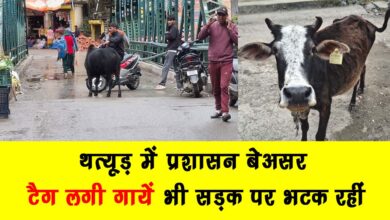 थत्यूड़ बाजार में आवारा पशुओं का आतंक! टैग लगी गायें भी सड़क पर घूम रहीं, प्रशासन बना मूकदर्शक