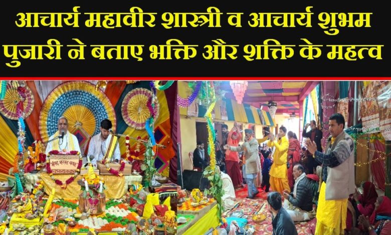 श्रीमद्भागवत कथा के प्रसंगों को विस्तार से समझाते हुए कथा व्यास आचार्य महावीर शास्त्री ने कहा कि “जो व्यक्ति अपने वर्तमान को सुधार लेता है, वही भागवत कथा के वास्तविक मर्म को समझ पाता है। जब तक भागवत जीवन में प्रवेश नहीं करती, तब तक जीवन की व्यथा समाप्त नहीं होती।”
