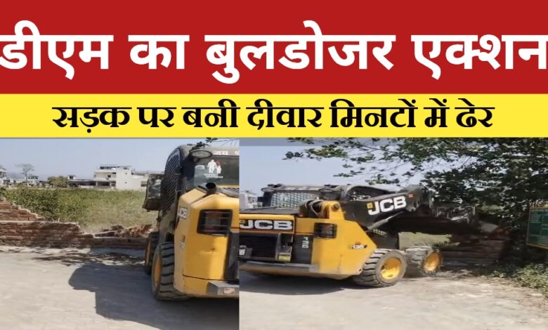 डीएम के आदेश पर चला बुलडोजर, नगर निगम की सड़क से अवैध दीवार हटी