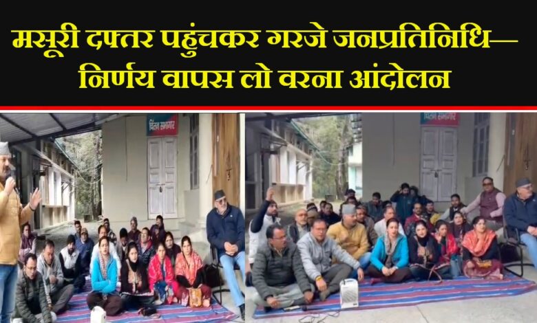 ग्रामीणों व जनप्रतिनिधियों ने मसूरी कार्यालय पहुंचकर किया प्रदर्शन, निर्णय वापस न लेने पर आंदोलन की चेतावनी