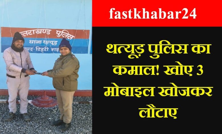 थत्यूड़ (टिहरी)। आमजन की समस्याओं के त्वरित समाधान की दिशा में थत्यूड़ पुलिस ने एक बार फिर अपनी संवेदनशीलता और कार्यकुशलता का परिचय दिया है। वरिष्ठ पुलिस अधीक्षक टिहरी गढ़वाल के स्पष्ट निर्देशों के क्रम में, अपर पुलिस अधीक्षक तथा क्षेत्राधिकारी चम्बा के कुशल पर्यवेक्षण में थाना थत्यूड़ पुलिस ने CEIR (Central Equipment Identity Register) पोर्टल का प्रभावी उपयोग करते हुए खोए/चोरी हुए तीन मोबाइल फोन बरामद कर उनके वास्तविक स्वामियों को सुरक्षित सुपुर्द किए।