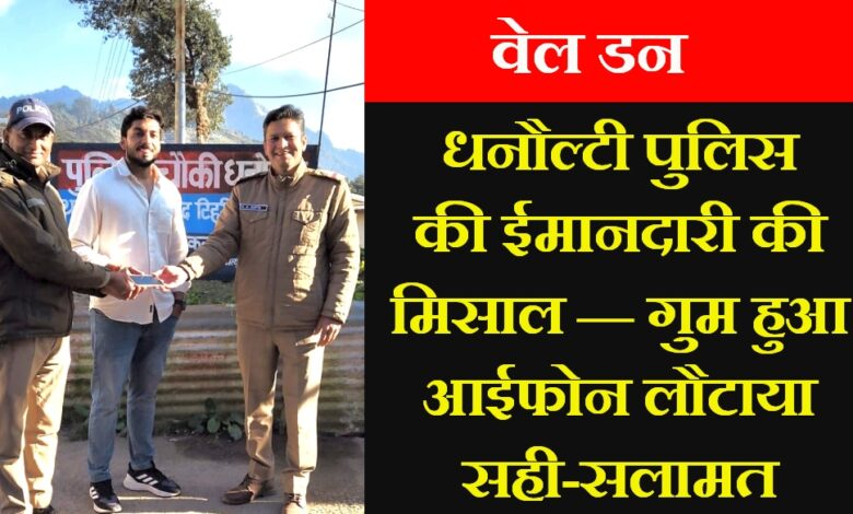 दिनांक 10 नवम्बर 2025 को शिवेश यादव निवासी रायबरेली (उत्तर प्रदेश) अपने परिवार के साथ धनौल्टी घूमने आए थे, जहां उनका आईफोन पार्क में कहीं गिर गया। सूचना मिलते ही चौकी प्रभारी उपनिरीक्षक नवल किशोर गुप्ता, हमराही कांस्टेबल दलीप कुमार व नरेश शोकटा ने त्वरित कार्रवाई करते हुए मोबाइल की लोकेशन ट्रैक कर सर्च अभियान चलाया और कुछ ही समय में मोबाइल बरामद कर लिया।